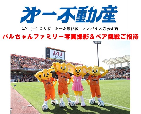 株式会社第一不動産 エスパルス応援企画 (12/4(土)C大阪戦 パルちゃんファミリー写真撮影&ペア観戦ご招待)