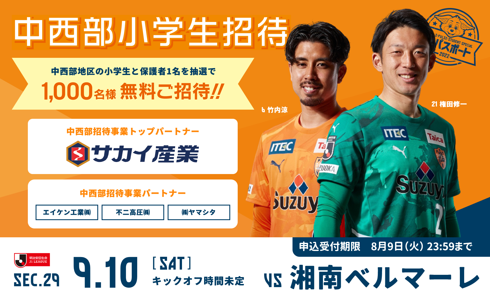 9/10(土)J1リーグ 湘南ベルマーレ戦 中西部小学生限定 親子招待企画実施のお知らせ