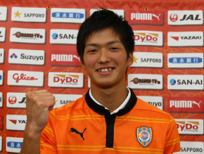 中学1年生でジュニアユースに入団して、将来の夢はエスパルスのユニフォームを着てプロになるということだった。今、こうしてエスパルスに加入できたことを本当に嬉しく思う。まだまだの部分もあるが、自分の特徴であるスピードを生かし、フォワードというポジションなので、できるだけ多く点を獲ってチームに貢献したい。