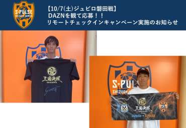【10/7(土)ジュビロ磐田戦】DAZNを観て応募!! リモートチェックインキャンペーン実施のお知らせ