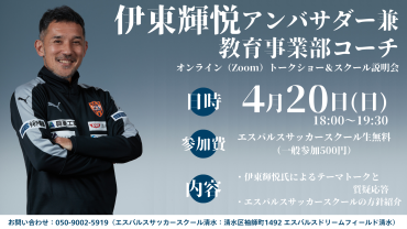ALL『伊東輝悦アンバサダー兼教育事業部コーチ』オンライン(Zoom)トークショー&スクール説明会開催