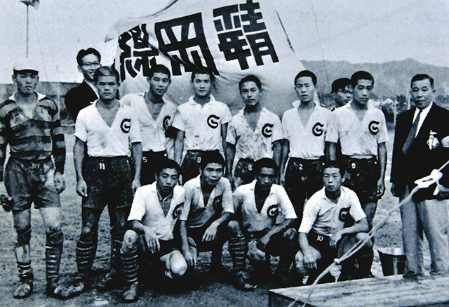 1958年富山国体に初出場で優勝した清水東イレブン。前年藤枝東に続く県勢2連覇達成