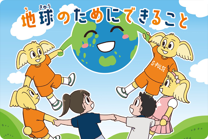 「エスパルスエコチャレンジ」の一環として、エスパルスを通じ環境問題に関心を持ち自分ごととして考えてもらうこと、学びをサポートすることを目的にオリジナルの『エスパルス エコノート』を制作し、2023年より静岡市内の全小学4年生へ贈呈しています。