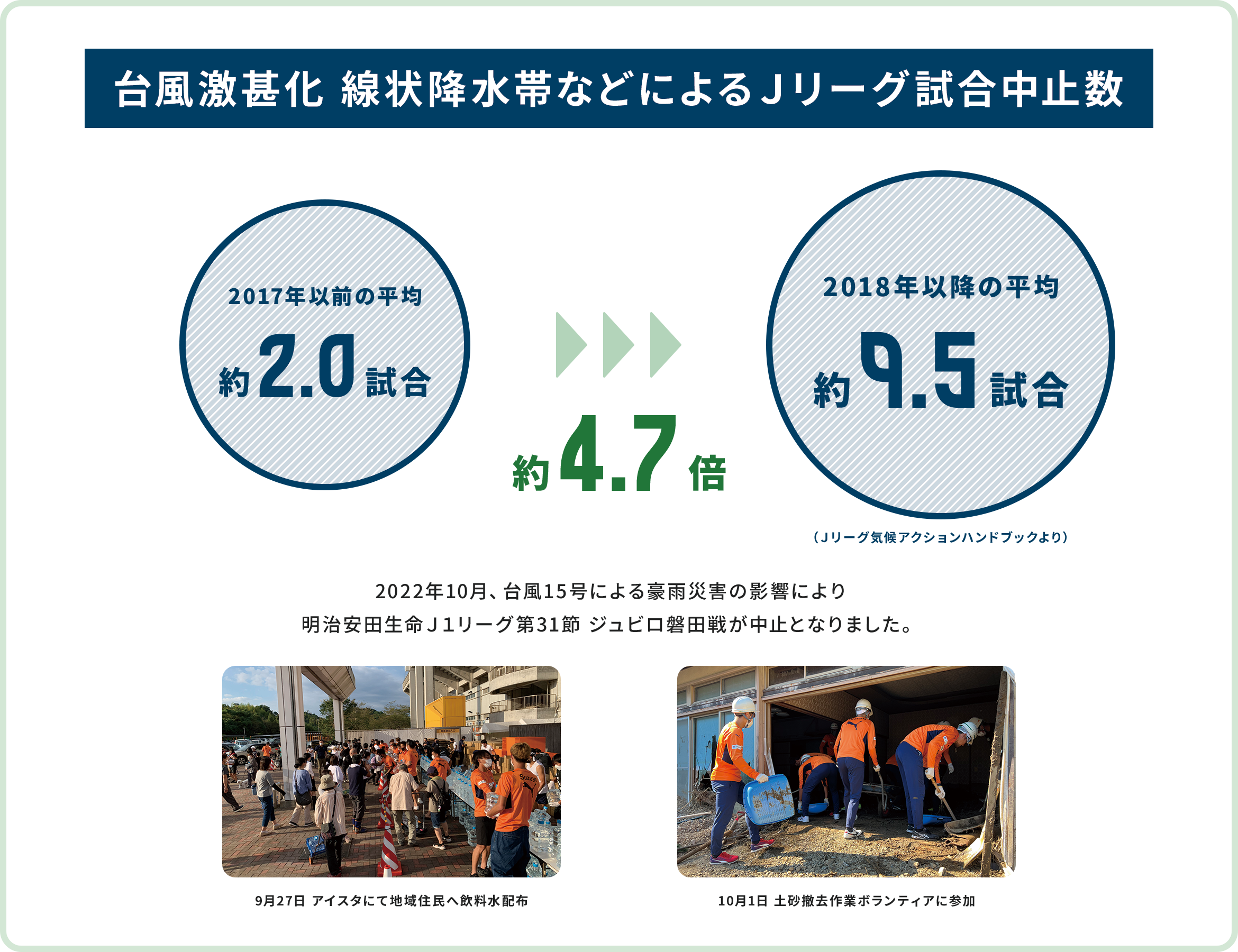 夏の異常な暑さ、豪雨等の気象災害は私たちの「サッカー環境」にも深刻な影響を与えている。