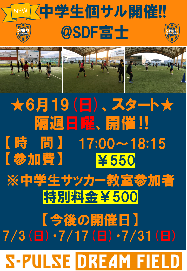 6月19日(日)から隔週日曜日で中学生個サル開催します。