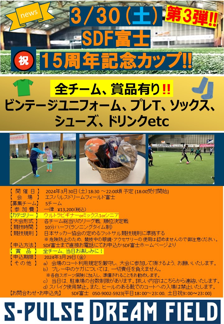 2024年3月30日、SDF富士15周年記念カップを開催いたします。