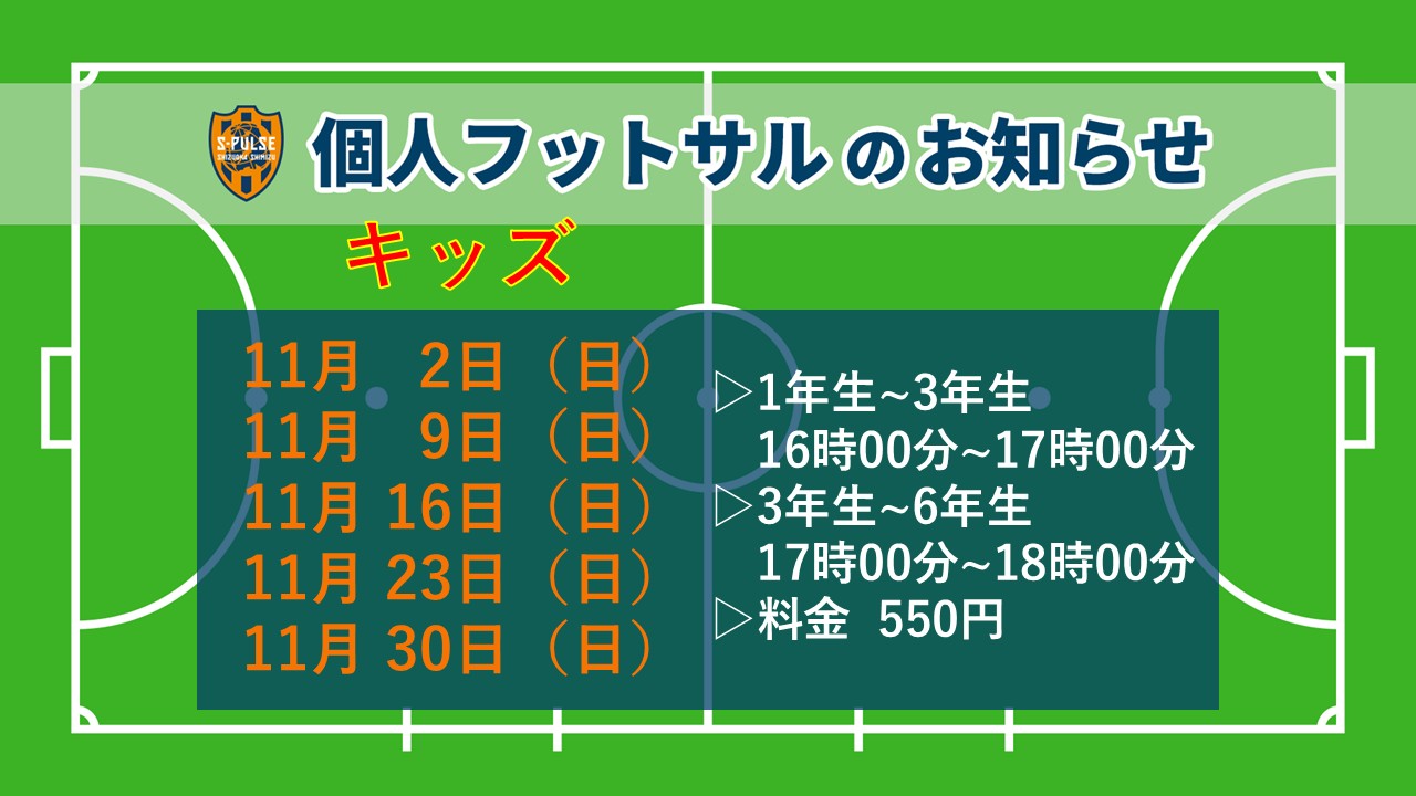 【SDF駿東】キッズ個サル 11月開催スケジュール