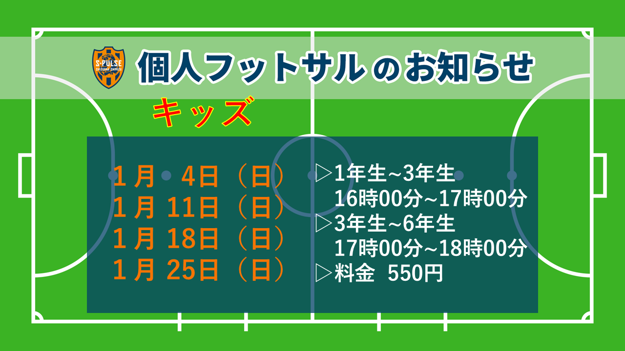 【SDF駿東】キッズ個サル 1月開催スケジュール