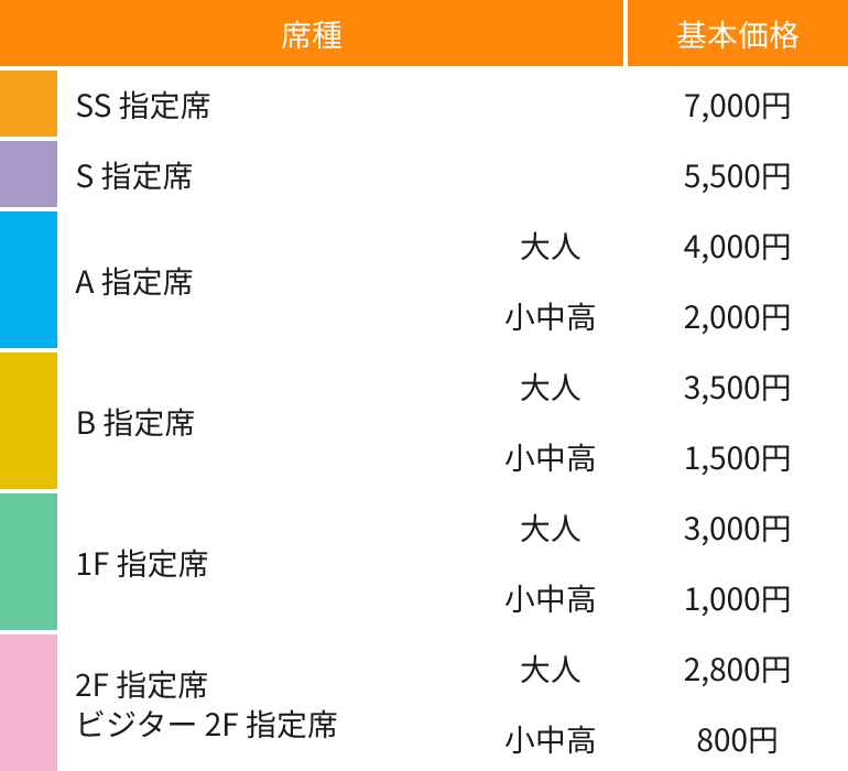 ※上記席種の販売価格は、ダイナミックプライシング(価格変動制)を適用いたします。発売初日から価格が変更となる場合もございます。