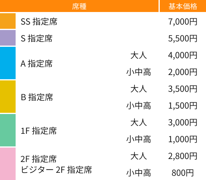 ※上記席種の販売価格は、ダイナミックプライシング(価格変動制)を適用いたします。発売初日から価格が変更となる場合もございます。