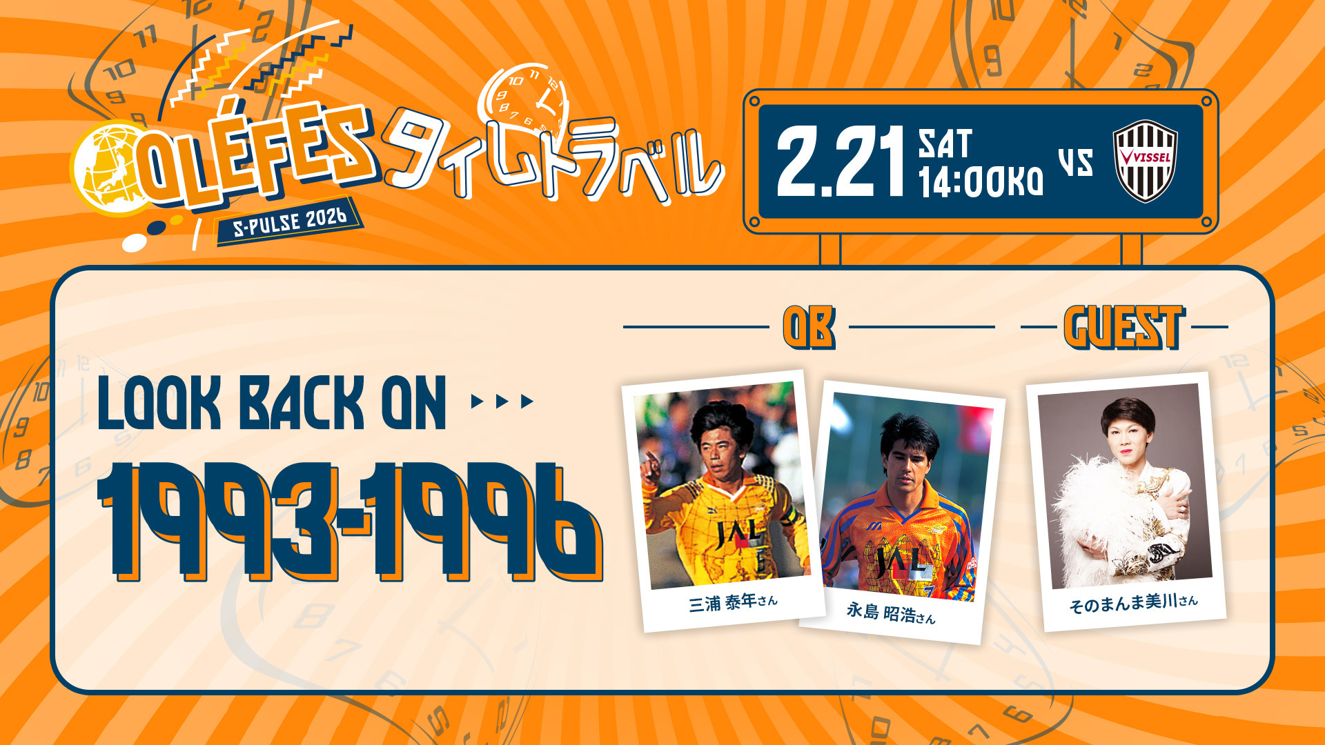 清水エスパルスでは、明治安田J1百年構想リーグを**「オレフェス -タイムトラベル-!!」**と題し、各節ごとに設定された“ターゲット年代”を軸に、クラブの歴史やその時代背景を振り返るスペシャルイベントを開催します!!