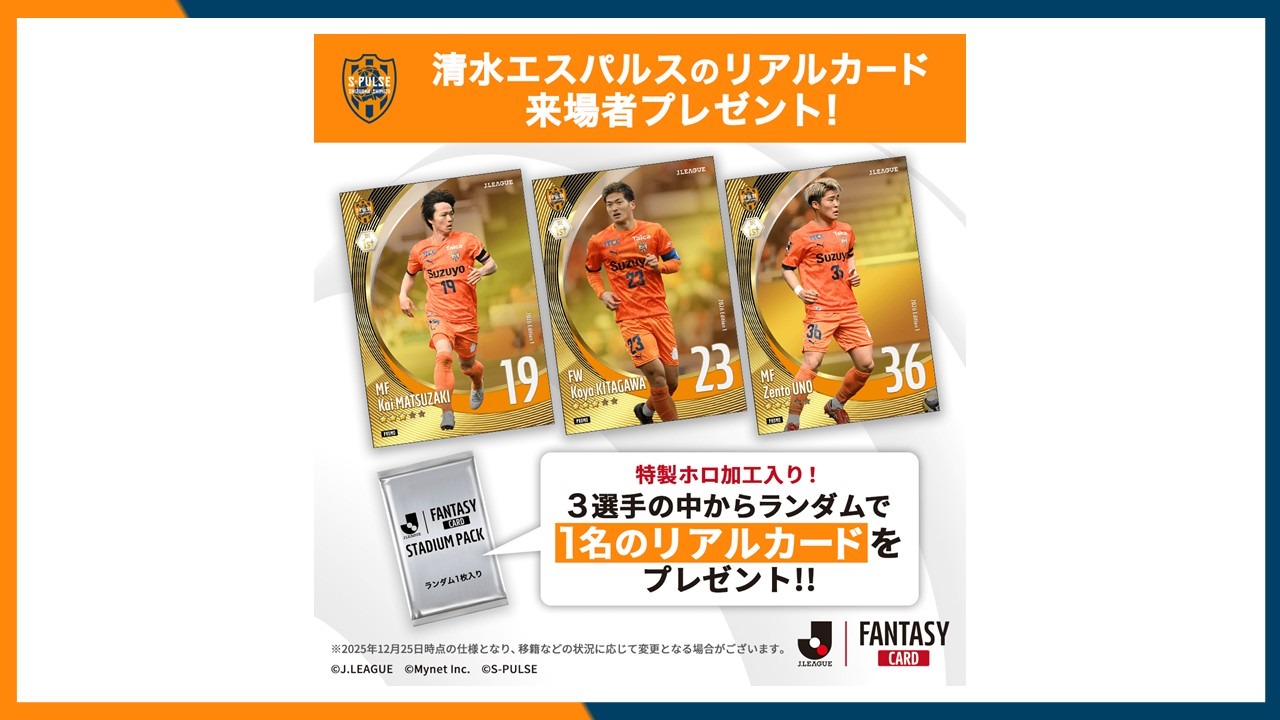 清水エスパルスカードコレクション(エスパコレ)では、ホームゲーム対象8試合にてスタジアム限定の無料スカウトキャンペーンを開催!