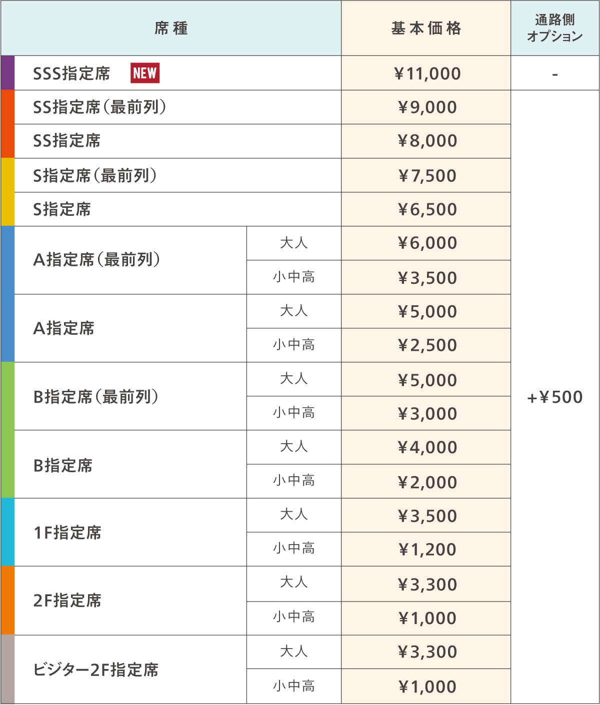 ※上記席種の販売価格は、ダイナミックプライシング(価格変動制)を適用いたします。発売初日から価格が変更となる場合もございます。