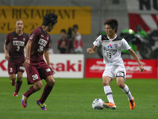 エスパルス、中央辻尾真二から右サイド大前元紀が受けて杉山浩太に戻すと走っていた辻尾真二にパス。だがDFにカットされる。すぐに杉山浩太がカバーに入りクリア。