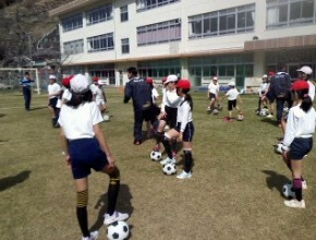 エスパルスアカデミーは2月28日、西伊豆田子小学校にて『校庭芝生化記念サッカー教室』を全校生徒71名を対象に行いました。