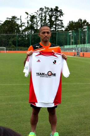 目的は、今月21日に行なわれる「東日本大震災復興支援 2012Jリーグスペシャルマッチ」に出場する小野伸二選手に、同大会のユニフォームを届けるため。