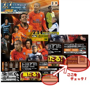 8/25(土)浦和戦の試合当日、当選されたPRチラシをエコパスタジアム総合案内所にお持ちください。番号を確認のうえ、当選賞品と引換えさせていただきます。
