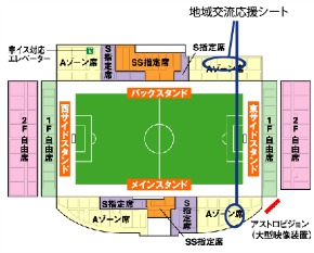 エスパルスは、9月15日(土)FC東京戦において、アウトソーシングスタジアム日本平のメイン・バックスタンドAゾーン席(アウェイより)の一部を、『地域交流応援シート』として区分使用させていただきます。当シートはエスパルスの応援を通じて市民間の交流を図り、静岡各地域の更なる活性化、並びに青少年の健全育成を目的に、エスパルスホームタウン推進活動の一環として設置いたします。皆様のご理解とご協力をお願い申し上げます。