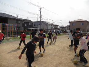 実技は鬼ごっこ系、動きづくり系、ボールフィーリング系の運動遊びに分けて行い、先生方にも実際に参加していただきました。