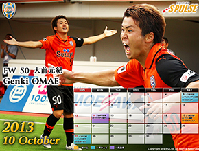清水エスパルス公式WEBサイト『壁紙ギャラリー』を更新しました。2013年10月のカレンダー壁紙は大前元紀選手です!