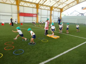 エスパルスアカデミーは10月3日、こばと幼稚園を対象にスポーツ教室を行いました。