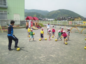 エスパルスアカデミーは6月2日、松千代保育園を対象に巡回スポーツ教室を実施しました。