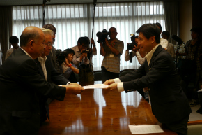 要望書を受け取る田辺信宏静岡市長 ©︎︎︎S-PULSE