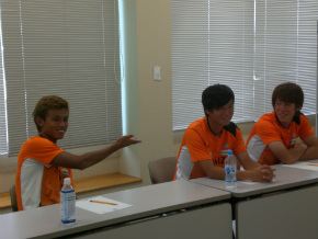 最後に、「I Like~because~」を含めて英語でそれぞれが自己紹介をしました。選手たちは、講義の最初に比べ、表現したいことが伝わる自己紹介ができるようになっていました。