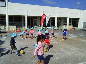 エスパルスアカデミーは10月29日、西奈幼稚園を対象にスポーツ巡回教室を実施しました。