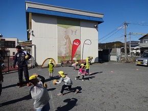 エスパルスアカデミーは2月10日、いさみ保育園を対象にスポーツ巡回教室を実施しました。