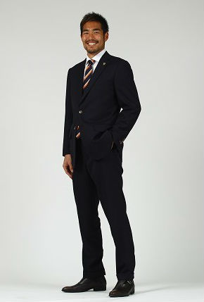 清水エスパルスの選手・スタッフ、社員が、2015シーズンの試合や公式行事で着用するオフィシャルスーツを発売します。濃い紺色の無地で、新社会人の方にもお勧めです。女性用スーツ(パンツ・スカート)もお仕立てできます。