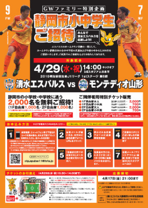 4/29山形戦のご招待チラシ ©︎︎︎S-PULSE