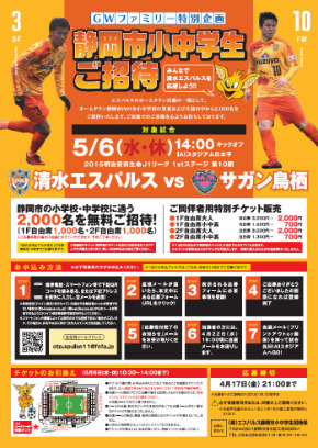 5/6鳥栖戦のご招待チラシ ©︎︎︎S-PULSE