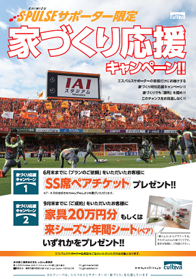 このたび、清水エスパルスのクラブスポンサーである赤池鉄工建設cultiva(カルティーバ)様より『家づくり応援キャンペーン』を実施することになりましたので、下記の通りお知らせします。