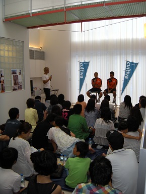このイベントは、5月30日川崎戦において、「カルティーバ」ブースおよびWebでのアンケートにお答えいただいた方の中から抽選で25組(約80名)を招待し、行われました。