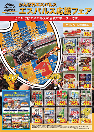 エスパルスオフィシャルクラブスポンサーのスーパーヒバリヤによる『エスパルス応援フェア!!』を実施いたしますので、下記の通りお知らせいたします。