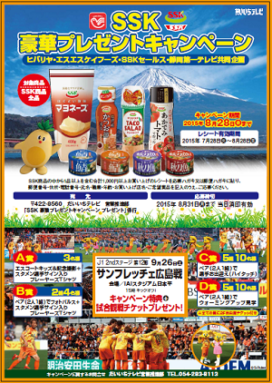 現在、ヒバリヤ・エスエスケイフーズ・SSKセールス・静岡第一テレビ共同企画の、清水エスパルス応援企画『SSK豪華プレゼントキャンペーン』を下記の通り開催していただいております。