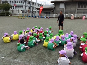 エスパルスアカデミーは9月29日、原里幼稚園を対象にスポーツ巡回教室を実施しました。