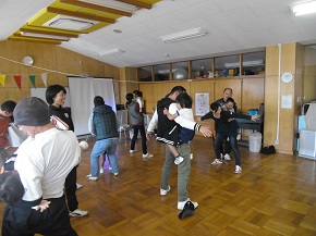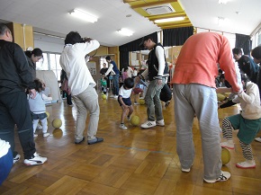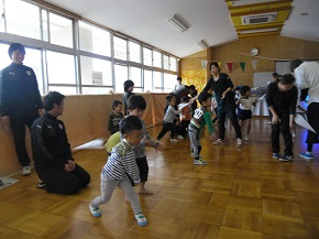 家庭でもできる親子のボール遊びから始まり、コーディネーションを意識した動きやシュート練習まで行い、子ども達は楽しそうに元気よく活動していました。また、慣れないトレーニングにも積極的にチャレンジしていました。