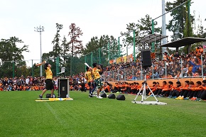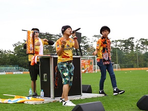 その後、選手・サポーターを前にJam9の生ライブ「ONE」-we're SHIMIZU S-PULSE-を熱唱すると、一気にグラウンドのボルテージが