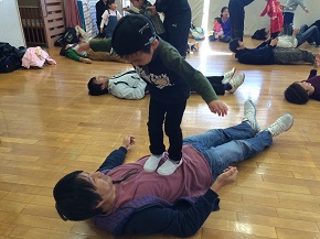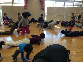 家庭でもできる親子の運動遊びから始まり、コーディネーションを意識した動づくりや、ボールを使っての様々な動作を学びました。少ない時間の中でも上達している姿に、コーチ陣も驚かされました。