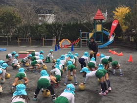 エスパルスアカデミーは12月2日、新間杉の子幼稚園を対象にスポーツ巡回教室を実施しました。