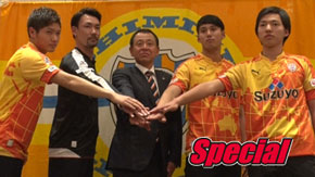 2016シーズンに臨む清水エスパルスの新体制発表記者会見。約70名のメディア各社を集め、2016新ユニフォームの発表、左伴繁雄社長より方針発表および2016クラブスローガンの発表、新加入スタッフの紹介、新加入選手の紹介が行われました。