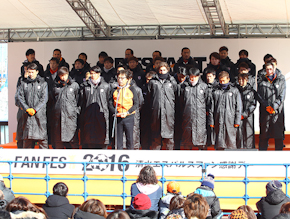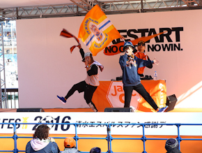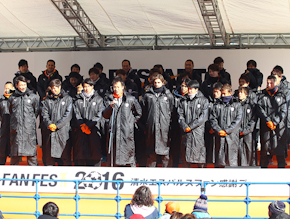 最後に、碓井健平選手会長が「2016年シーズンが始まりました。皆さん、ワクワクしていますか?皆さんが試合でもワクワクしてもらえるように、みんなで頑張っていくので今年もよろしくお願いいたします。今日は皆さんに喜んでいただけるよう、様々な企画を用意しましたので、みんなで楽しみましょう!それでは、エスパルスファン感謝デーを開催します!!」と開会宣言し、イベントがスタートしました。