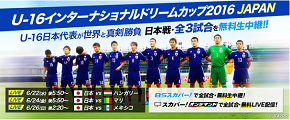 スカパー!ではU-16日本代表が戦う全3試合を、BSスカパー!で無料生中継、スカパー!オンデマンドでも無料LIVE配信いたします!是非、若きサムライ達の活躍を応援してください!