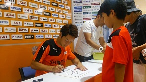 エスパルスの鎌田翔雅選手が7月18日(月祝)、エスパルスオフィシャルパートナーであるアピタ島田専門店会のイベント『清水エスパルス選手サイン会inアピタ島田』に参加しました。
