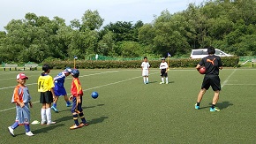 サッカークリニックでは、4名のコーチたちが、サッカーが上手くなるための基礎練習や実戦的な練習メニューなどを取り入れ、子供たちとの触れ合いを大切にしながら熱心に指導していました。また、非常に暑い日でありましたが、暑さに負けない元気な子どもたちは、コーチたちの言葉に耳を傾け、真剣に、また楽しそうに取り組んでいました。