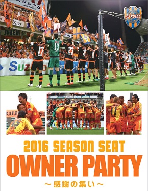 毎試合、シーズンシートでエスパルスを支えていただいている皆様への感謝の気持ちを込め、12月10日(土)に開催する「2016シーズンシートオーナーパーティー ~感謝の集い~」の参加申込み方法を、下記の通りご案内いたします。