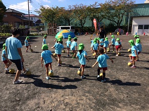 エスパルスアカデミーは10月18日(火)、青木保育園を対象にスポーツ巡回教室を実施しました。