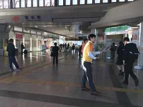 JR清水駅での告知活動(チラシ配布サポーターの皆さんと一緒に) ©︎︎︎S-PULSE